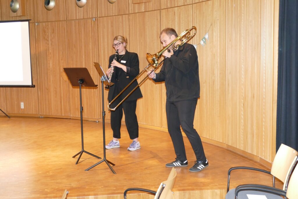 Auch Carmen Bühl, seine Stellvertreterin, hatte bei der Begrüßung gesagt: „Wir feiern nicht unseren Verein – das haben wir noch nie gemacht – sondern all die Menschen, die den Verein tragen. Denn ohne ihr Vertrauen wäre unsere Arbeit nicht möglich.“ Die relativ kleine Anzahl der Gäste begründete sie so: „Es wurden die Ehrenamtlichen eingeladen, die schon lange dabei sind.“ Schön an dem Ort war, dass die Leiterin der SMTT, Klarinettistin Maria Wunder, und Posaunist Walter Melcher für wunderbare Musik sorgten.